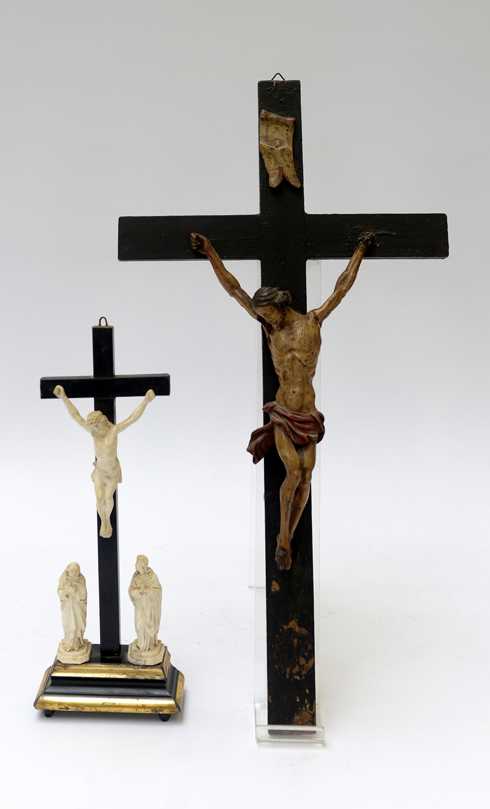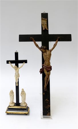 Lotto composto da due crocifissi di materiali ed epoche diverse (difetti)