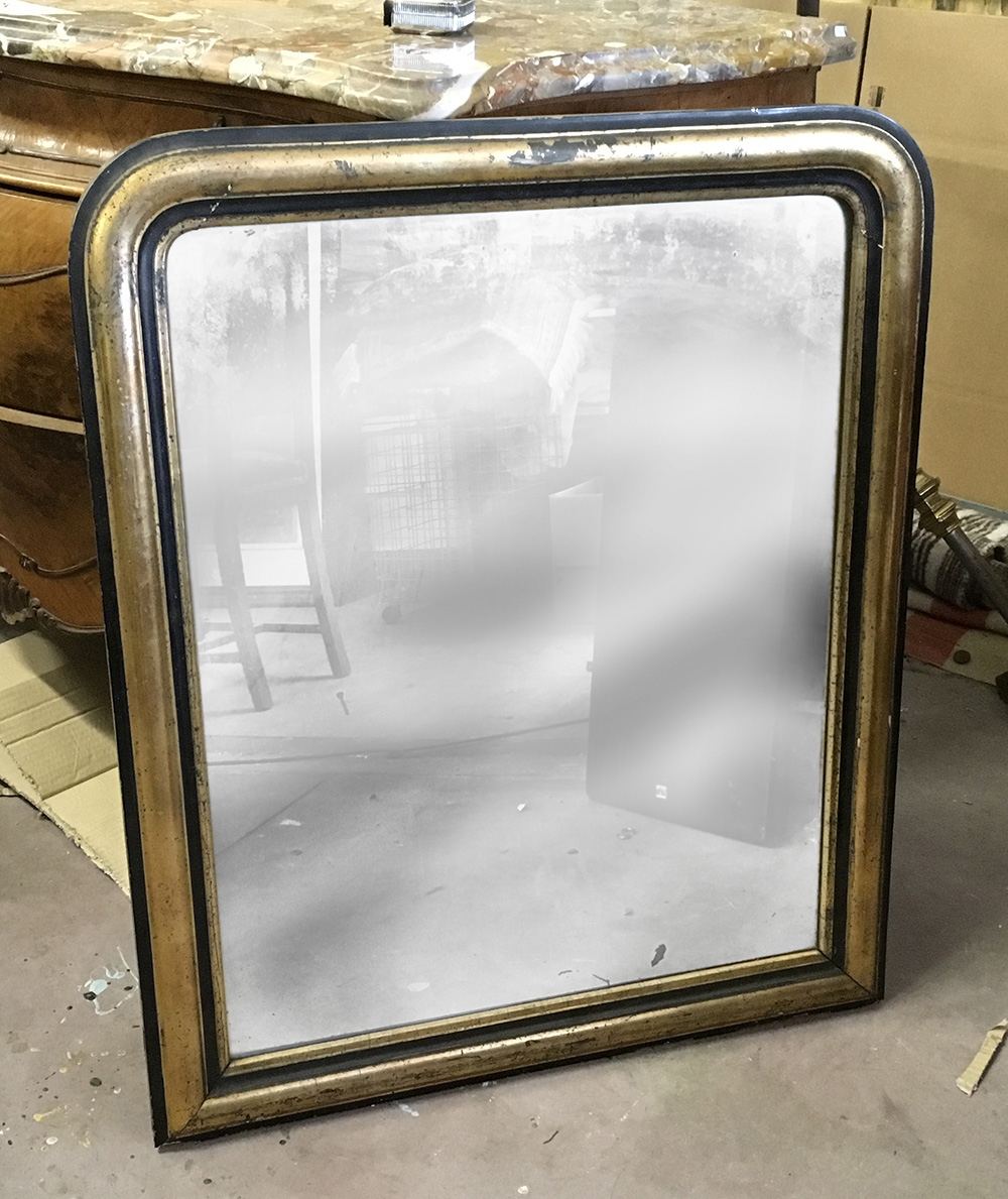 Specchiera con cornice in legno dorato ed ebanizzato (cm 90x72) (difetti)