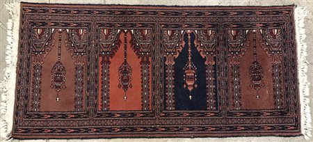 Tappeto Saph, Pakistan sec. XXDisegno a preghiera nei toni del blu , rosso e...