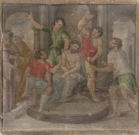 Ignoto ''Fustigazione'' olio su tela (cm 28x29) In cornice del secolo XVII in...