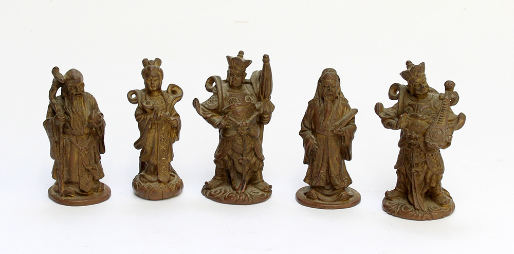 Cinque sculturine in bronzo raffiguranti immortali taoisti (h. max cm 8)