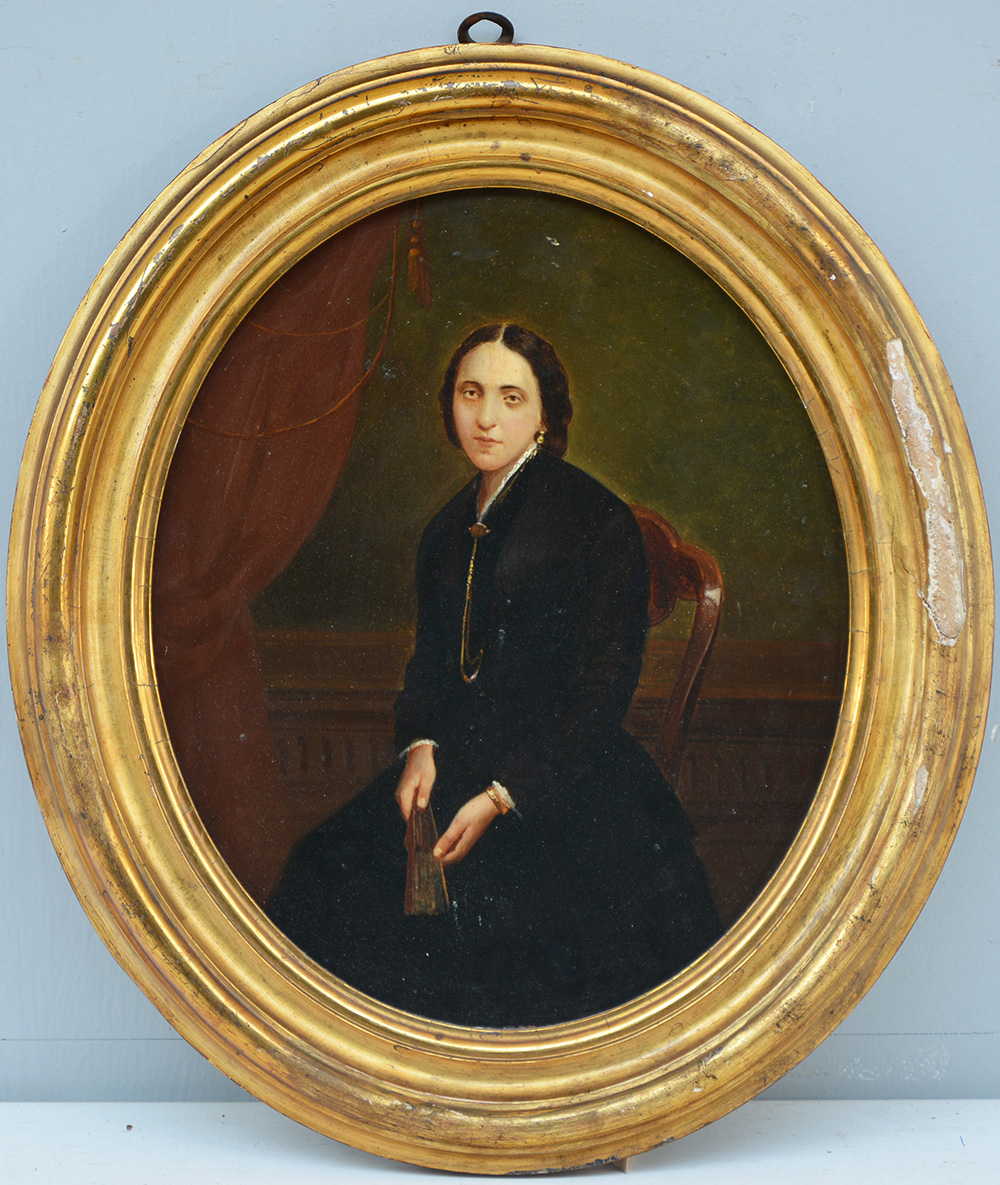 Artista del secolo XIX, "Ritratto di signora" olio su tavola ovale (cm...