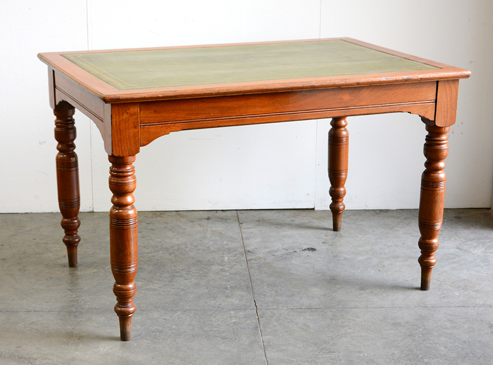 Scrittoio da centro con piano in marocchino verde impresso in oro, gambe tornite (cm 121x77x80)(difetti)