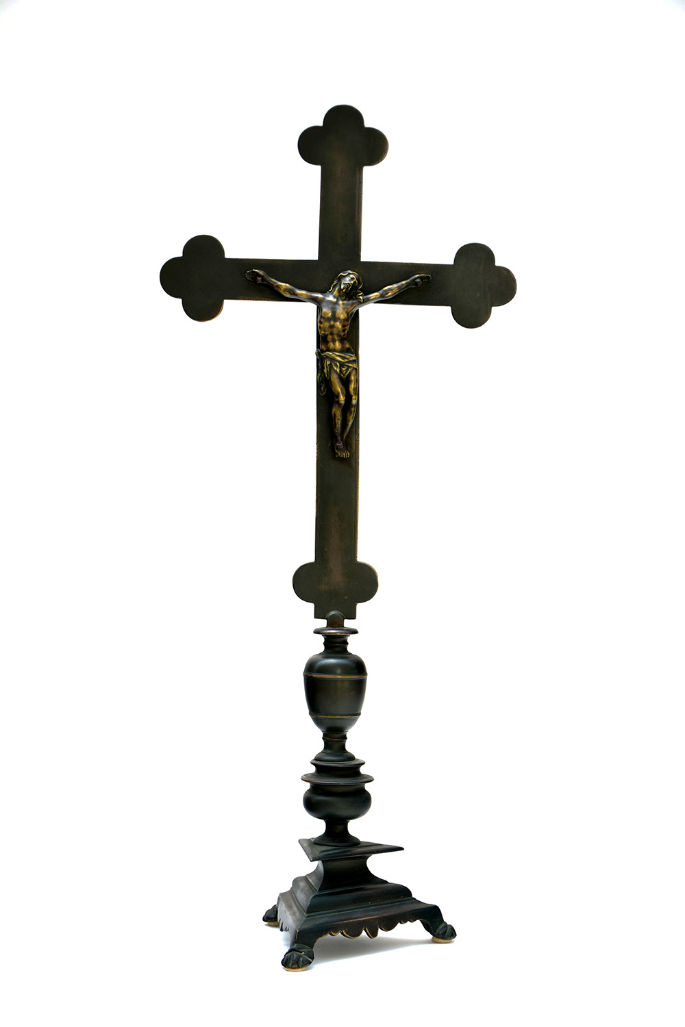 Arte del secolo XIX. Crocifisso in bronzo tornito e cesellato (h. cm 67)