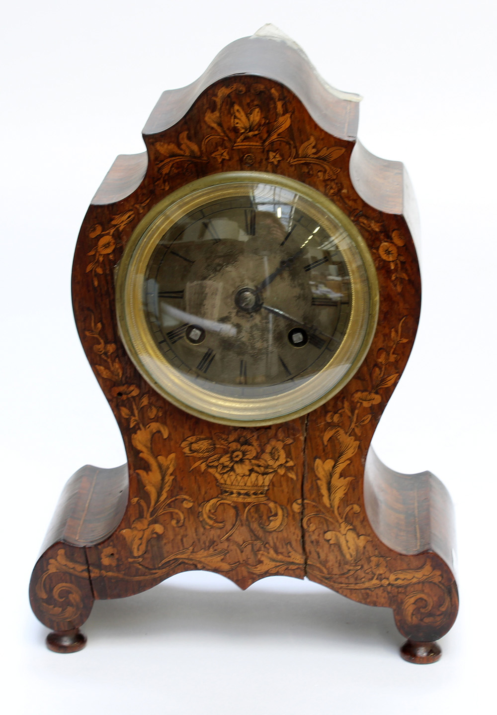 Pendola da tavolo con cassa in legno decorata da piccoli intarsi, movimento...