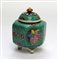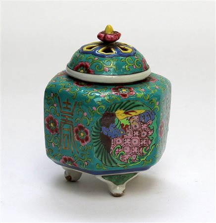 Bruciaprofumo con coperchio il porcellana policroma a fondo turchese (h cm...
