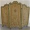 Paravento a tre ante di forma sagomata in legno laccato e parzialmente...