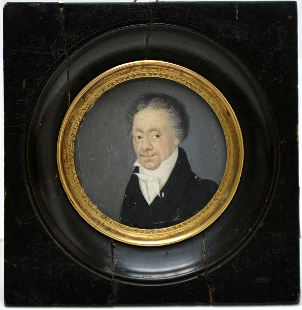 Scuola del secolo XIX "Gentiluomo" miniatura tonda (cm 6x6) In cornice (difetti)