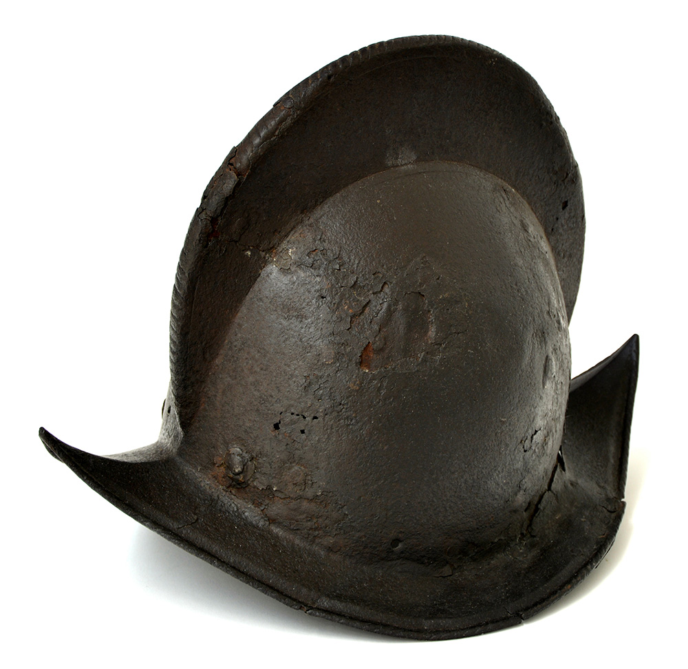 Morione crestato prodotto in due metà ribadite tra loro.Presenta numerose...