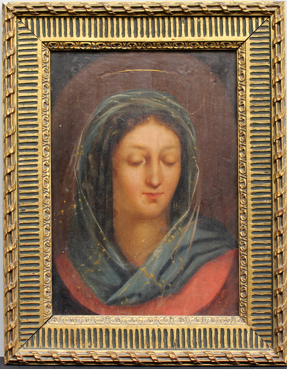 Firma indecifrata"Madonna" 1866olio su tela applicata a cartone (cm...