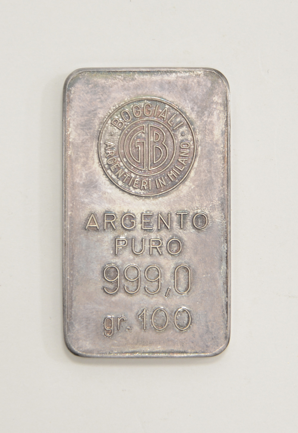 Lingotto in argento 999/1000 da g.100 con iscrizione,