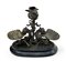 Saliera in bronzo con vasche a forma di valve di conchiglia sorretta a figure...