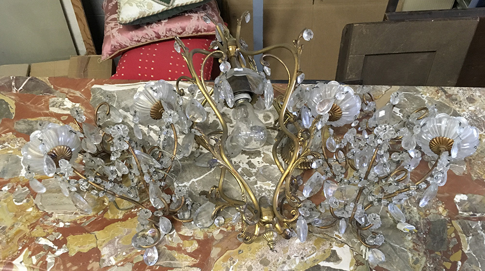 Lotto composto da un lampadarietto a una fiamma e da una coppia di applique,...
