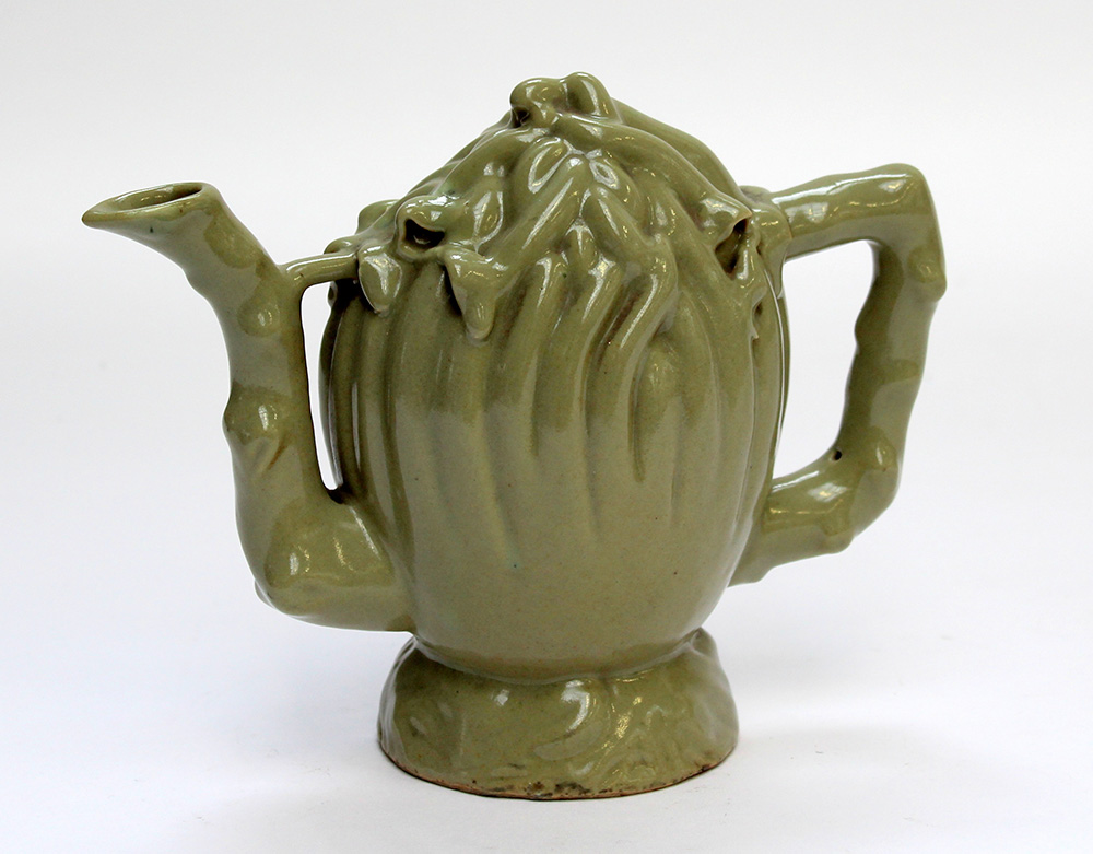 Versatoio a guisa di frutto con invetriatura color celadon (h. cm 18)