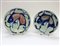 Due piatti a decoro bianco, blu e rosso raffiguranti carpe, manifattura sud...
