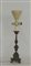 Candeliere tripode in metallo sbalzato e argentato montato a luce elettrica...