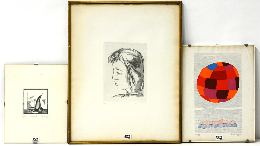 Lotto 2339 | Lotto di tre opere grafiche di autori e misure differenti, tutte firmate e...
