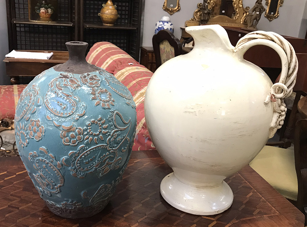 Lotto composto da un versatoio e un vaso in terracotta e ceramica (difetti e...