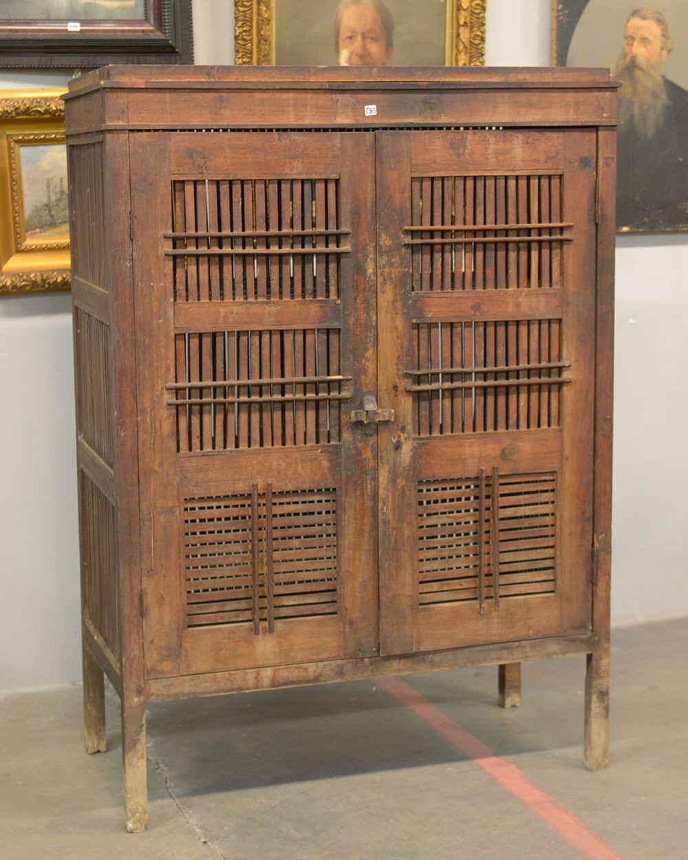 Lotto 2363 | Mobile credenza a due ante in legno con fronte e fianchi a listelli (cm...