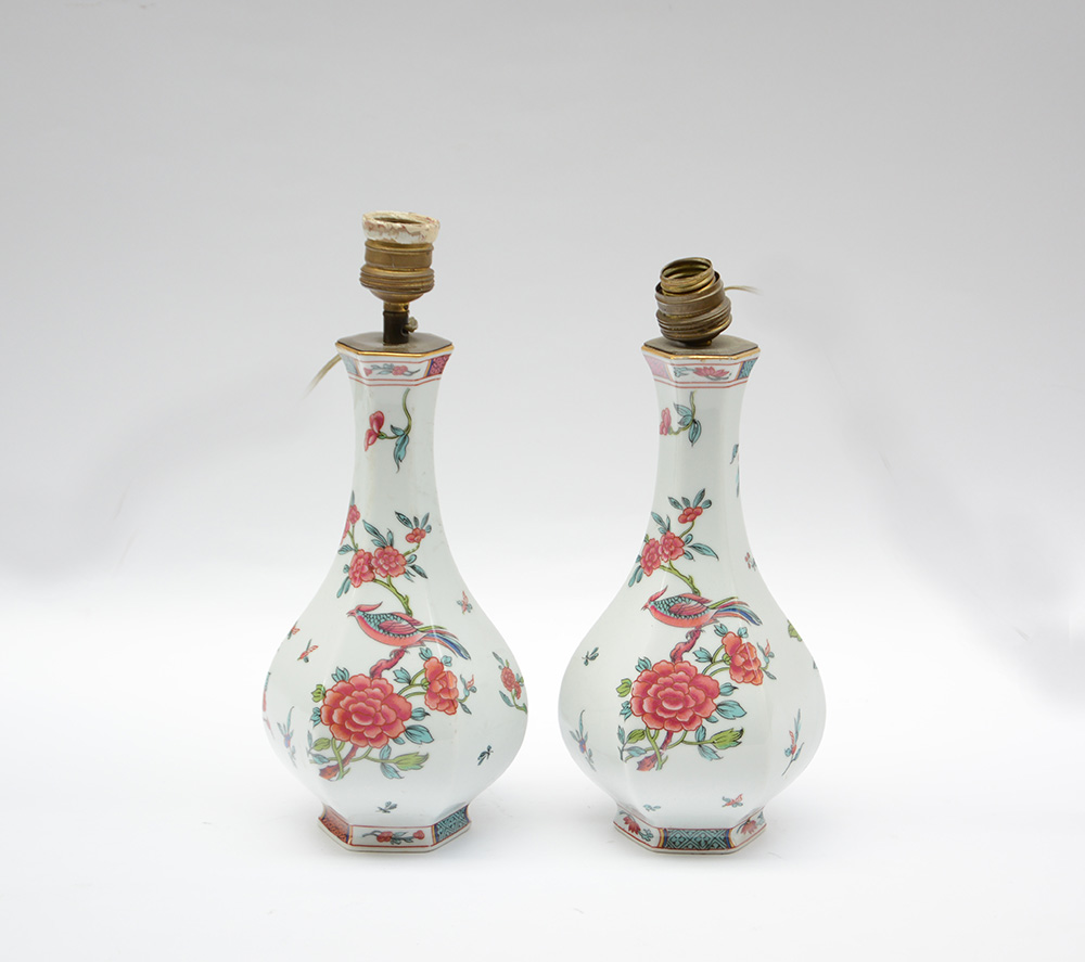 Manifattura francese Limoges, coppia di lampade da tavolo in porcellana...