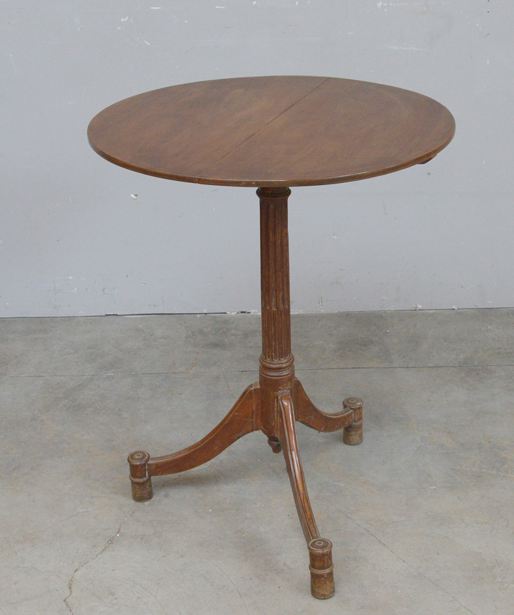 Tavolo da salotto di forma tonda poggiante su gamba centrale a colonna scanalata terminante a tre piedi sagomati (61x75)