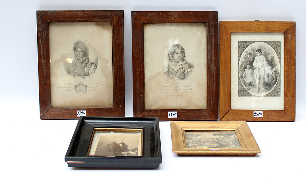 Lotto composto da quattro incisioni ed una foto, in cornici