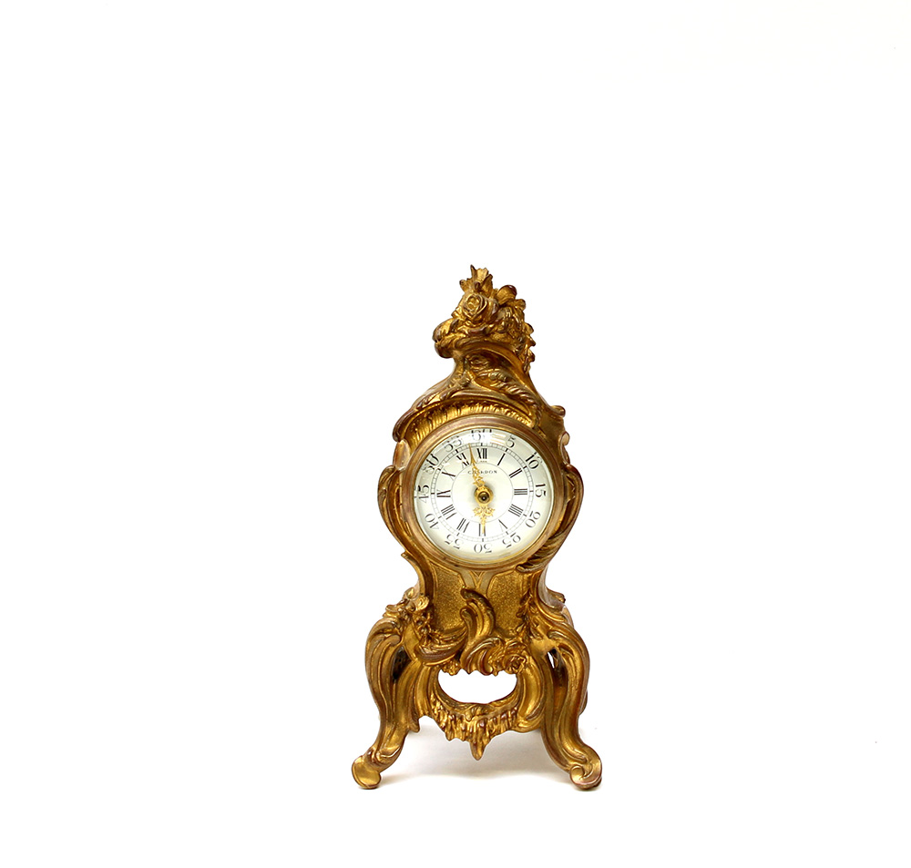 CHARDON Orologio d'appoggio in antimonio, quadrante in smalto bianco con...