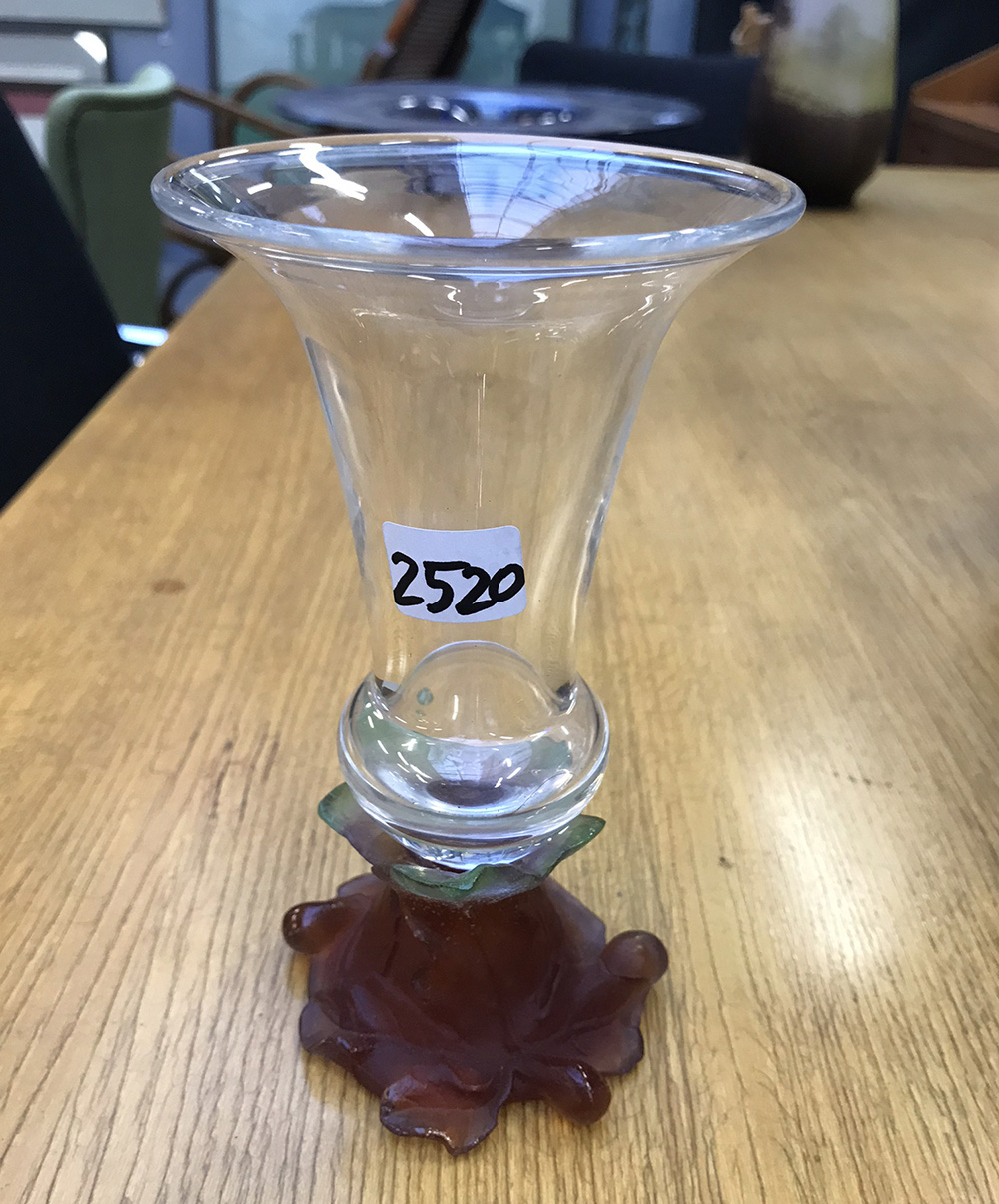 DaumVasetto in vetro con base in pasta vitrea soffiata in stampo e corroso...