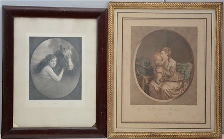 Lotto composto da due litografie di autori e soggetti diversi, in cornici (difetti)