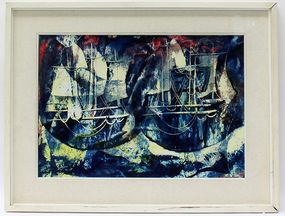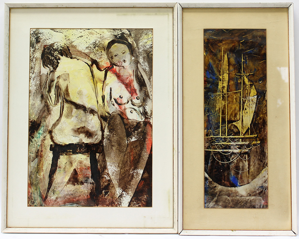 Ignoto, gruppo di quattro composizioni a tecnica mista su carta, misure differenti, in cornici (difetti)