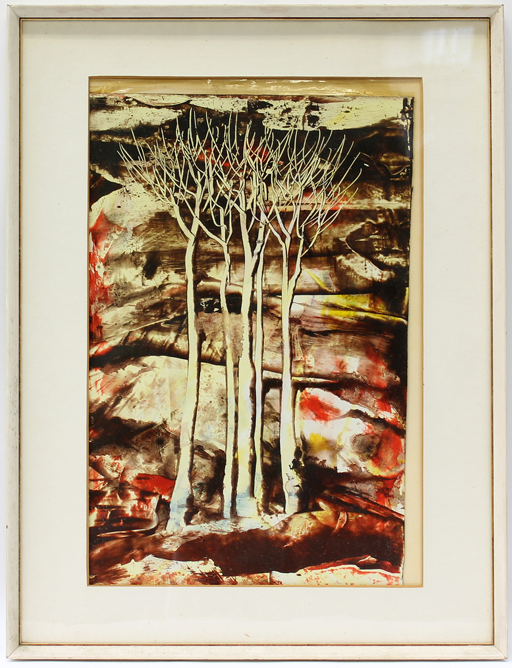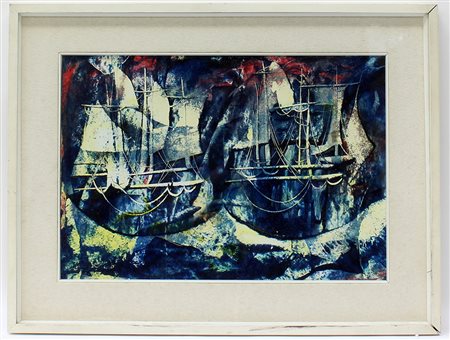 Ignoto, gruppo di quattro composizioni a tecnica mista su carta, misure...