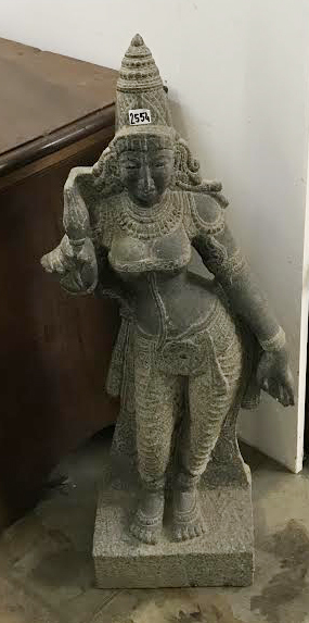 Scultura in pietra grigia raffigurante divinità femminile (h cm 81)India,...