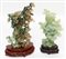 Due vasi in pietra dura scolpiti con motivi floreali e insetti, base in legno...