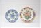 Lotto composto da due piatti tondi in ceramica policroma di fatture e decori diversi (difetti)