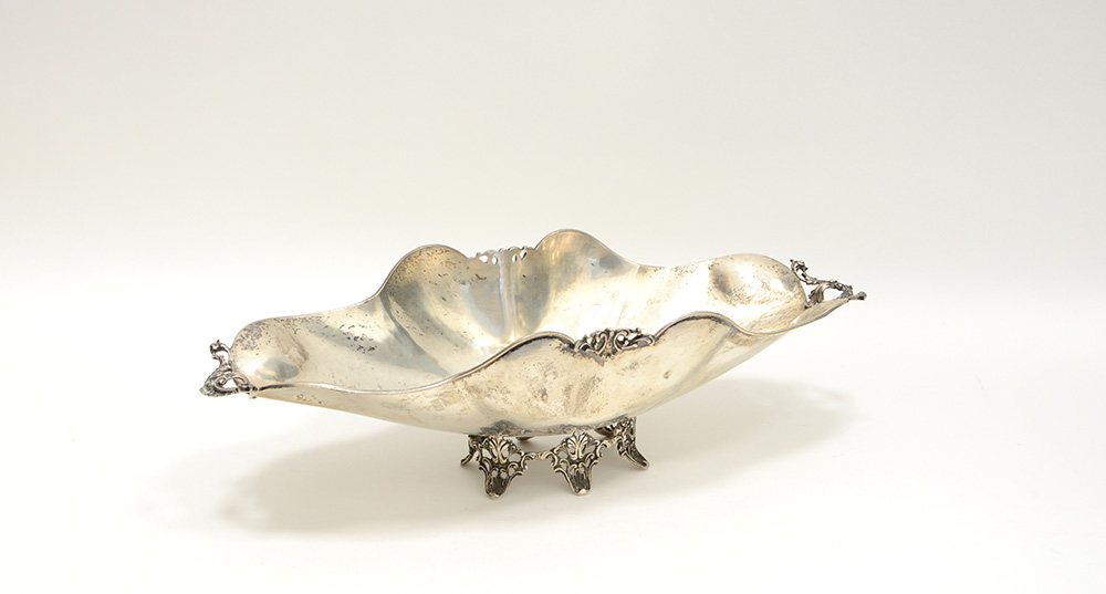 Centrotavola di forma sagomata in argento con bordo traforato (gr 530 ca)