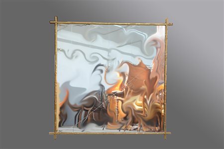 Specchiera quadrata in ottone con cornice simulante bambù (difetti allo...
