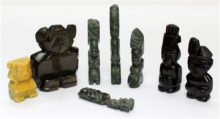 Otto sculture in pietra dura raffiguranti divinità, manifattura asiatica (lievi difetti)