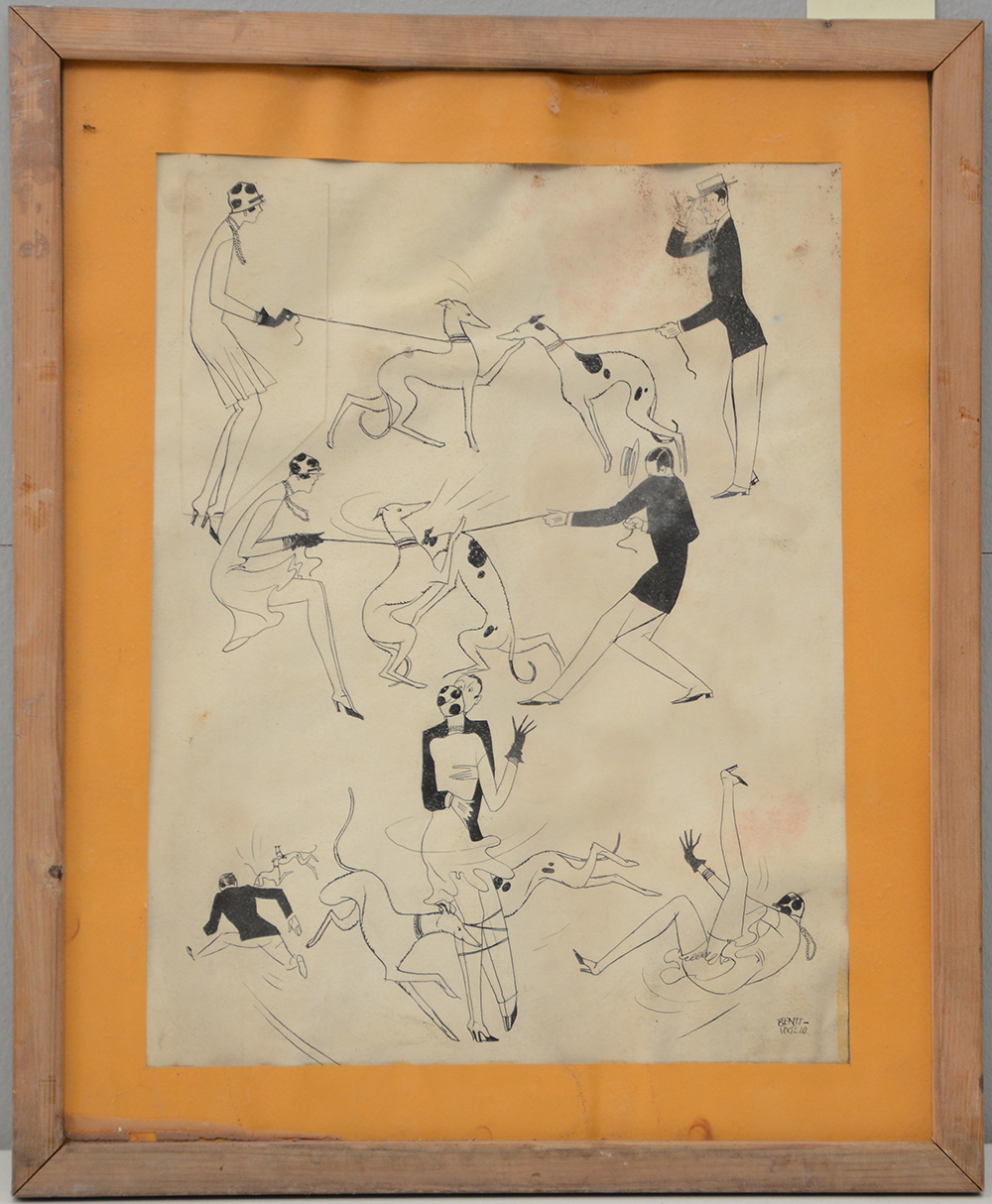 Bentivoglio "Levrieri" china su carta (cm 35x27) firmato in basso a destra,...