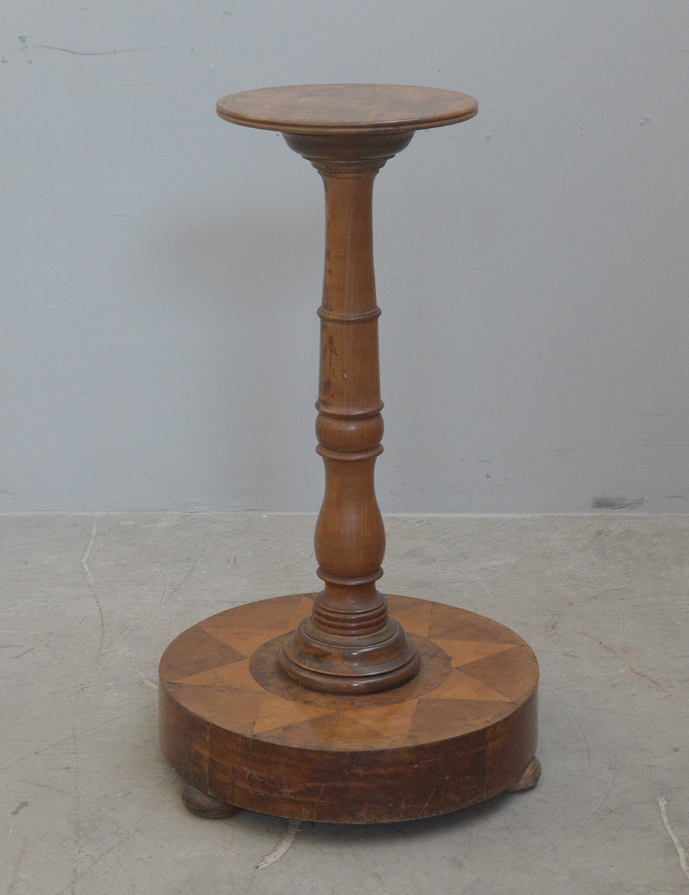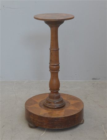 Colonna portavaso in noce con colonna tornita poggiante su base circolare intarsiata a stella. Secolo XIX (h cm 86)