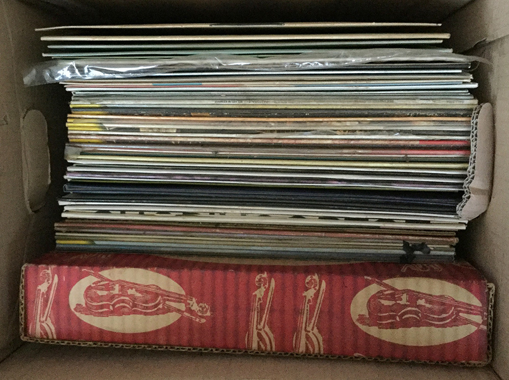 Lotto di tre cartoni contenenti numerosi vinili, per la maggior parte di musica classica (difetti)