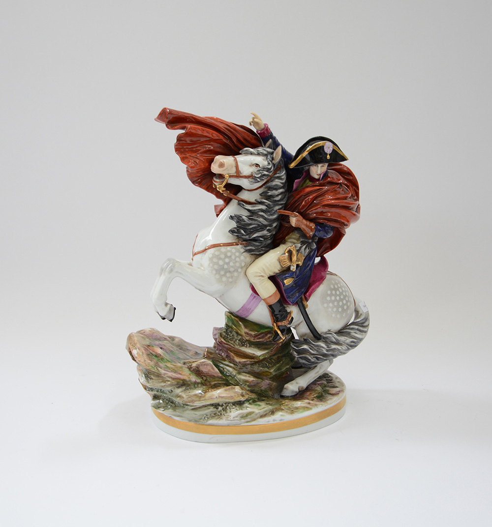 Rappresenta il generale Bonaparte a cavallo al passaggio delle Alpi come dalla famosa opera del David.