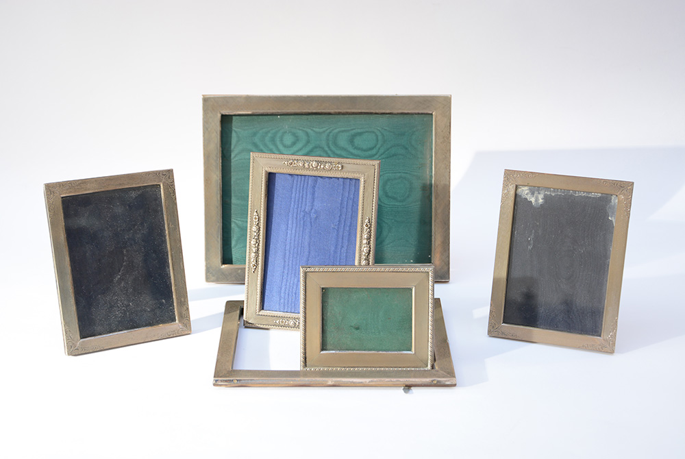 Lotto di sei cornicette portafoto in lamina d'argento di misure differenti (difetti)