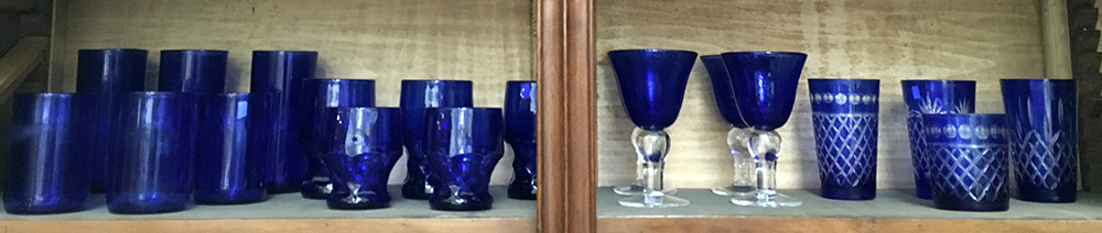 Lotto composto da numerosi bicchieri in vetro blu, manifatture differenti...