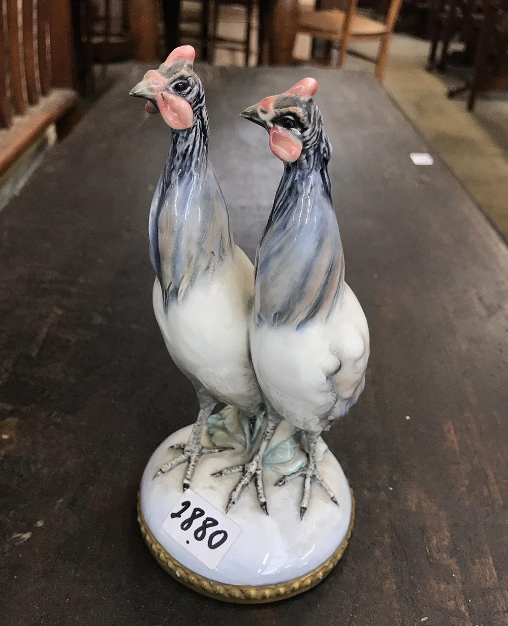 "Tacchini", scultura in ceramica decorata in policromia (h cm 19).