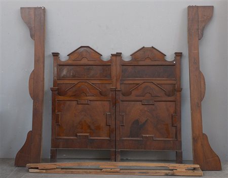 Letto in noce e radica con testata e pediera di forma architettonica. Lombardia, secolo XIX (difetti e mancanze)