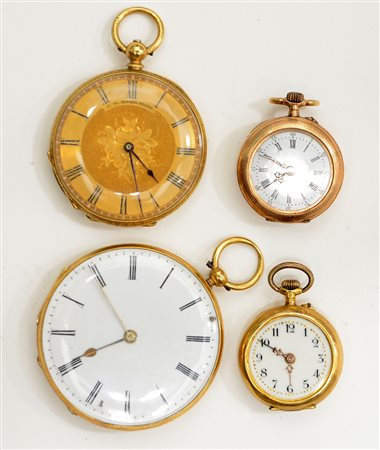 Lotto composto da quattro orologi da tasca in oro di diversa caratura (difetti)