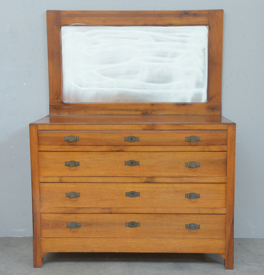 Comò con specchiera a quattro cassetti, terminanti a piedi a parallelepipedo (cm 140x180x58)