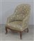 Poltroncina da camera in noce con gambe intagliate terminanti a ricciolo, secolo XIX