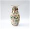 Vaso a balaustro in porcellana policroma su fondo craquelé decorato con scena...