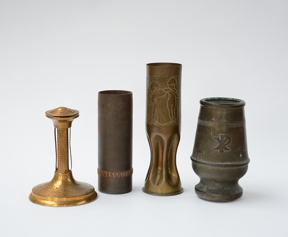 Lotto composto da quattro oggetti diversi in rame, uno con cristogramma (difetti)